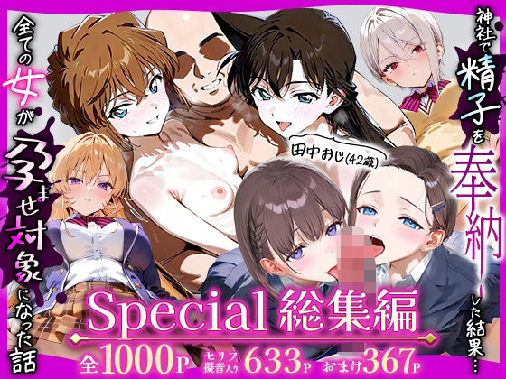田中おじ(42歳)神社で精子を奉納した結果…全ての女が孕ませ対象になった話Special総集編|五平餅を読むなら、FANZAよりDLsiteのほうが薄モザで高画質じゃないの?